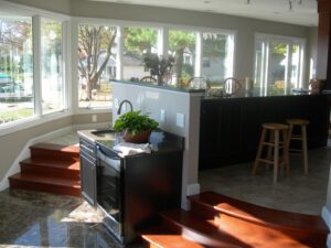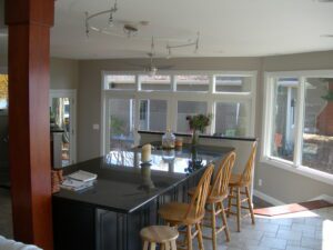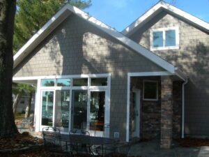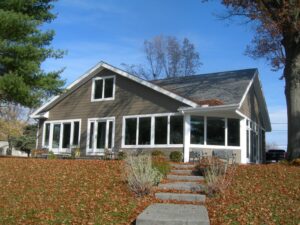 We created a unique addition to open up the house and add windows so the homeowners could take advantage of the lake views. This renovated home is located in Buckeye Lake, Ohio.